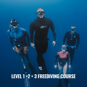 - Includes: All freediving equipment rental, Online learning materials and freediving certification